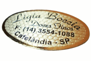Etiqueta adesiva para floricultura em papel laminado ouro brilhante.